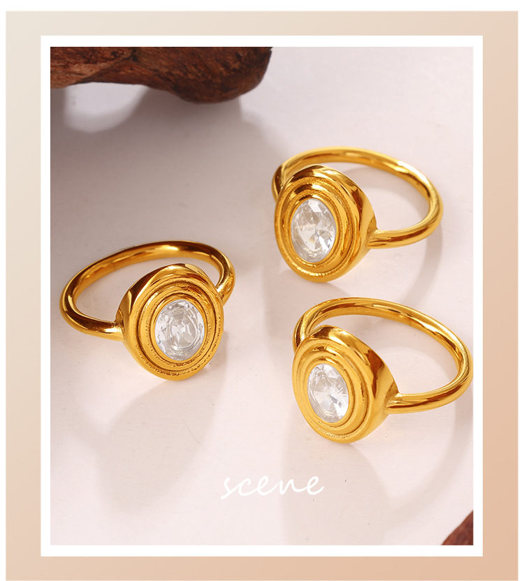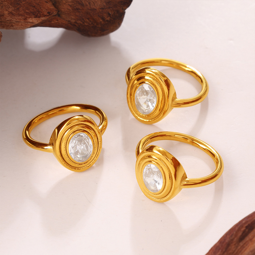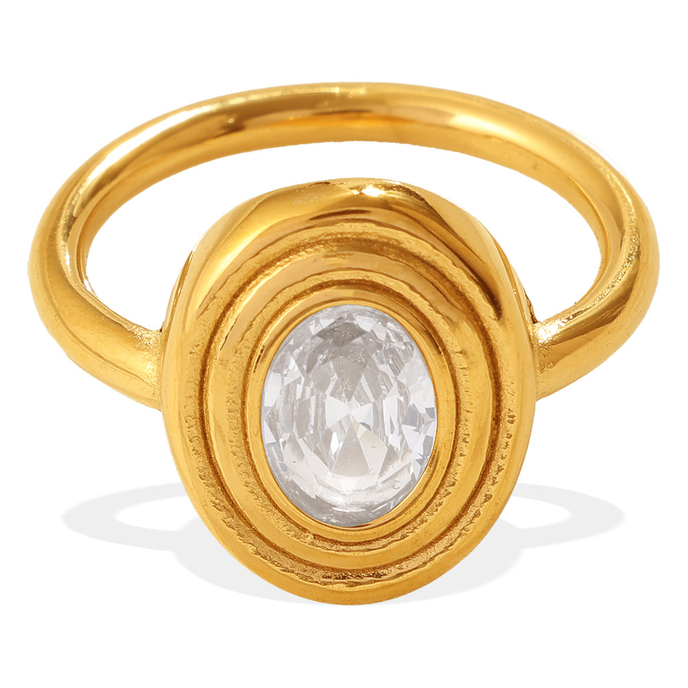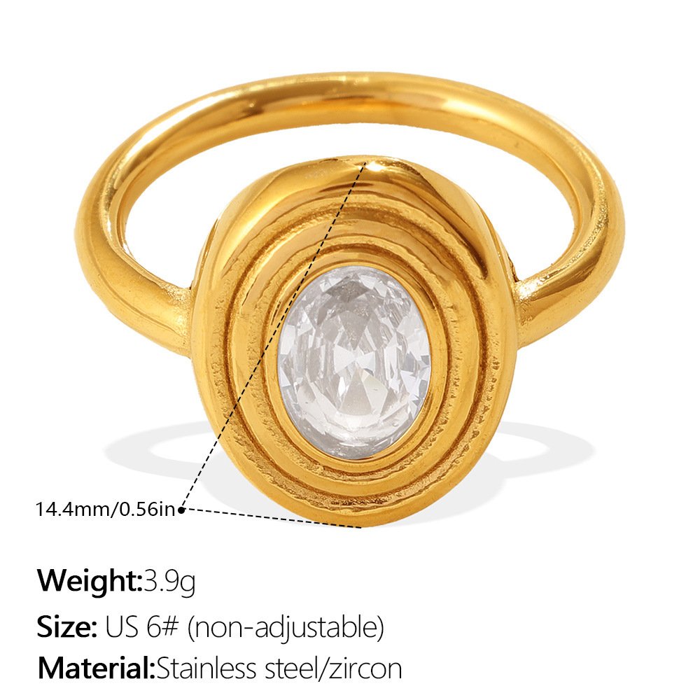 European And American Cross-border Vintage Luxury Oval White Diamond Ring, With A Sophisticated And Niche Design, In Gold Finger Ring Accessory.