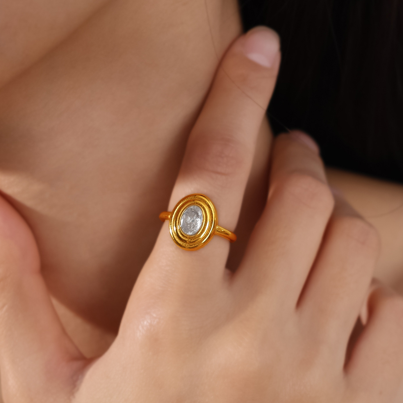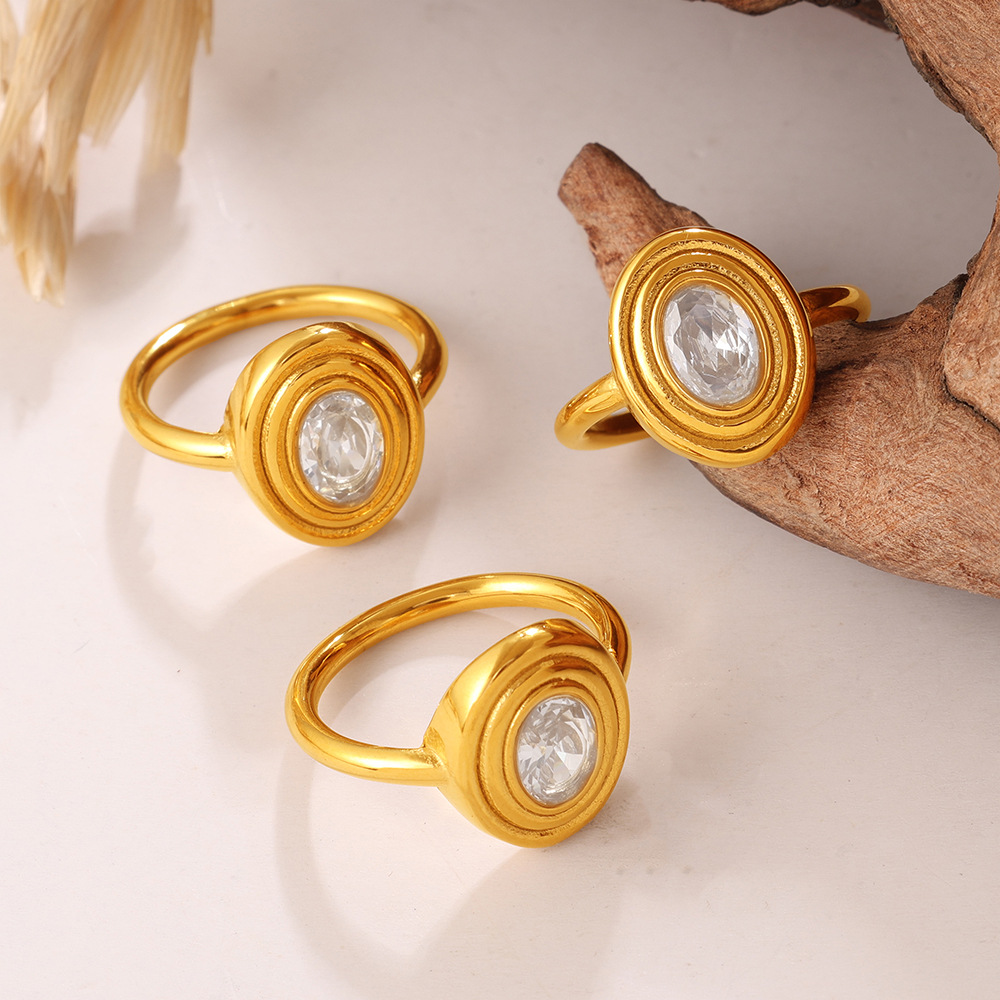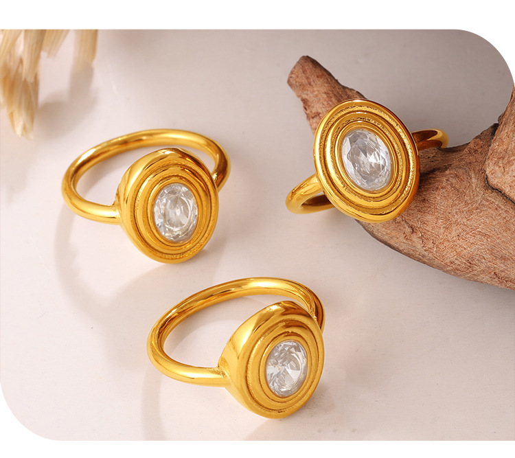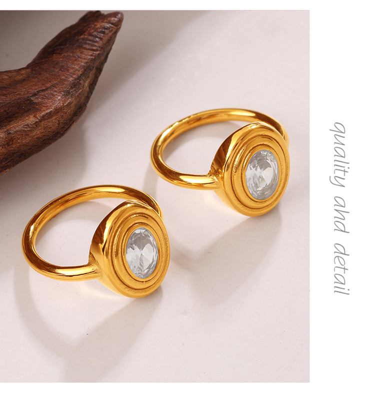 European And American Cross-border Vintage Luxury Oval White Diamond Ring, With A Sophisticated And Niche Design, In Gold Finger Ring Accessory.
