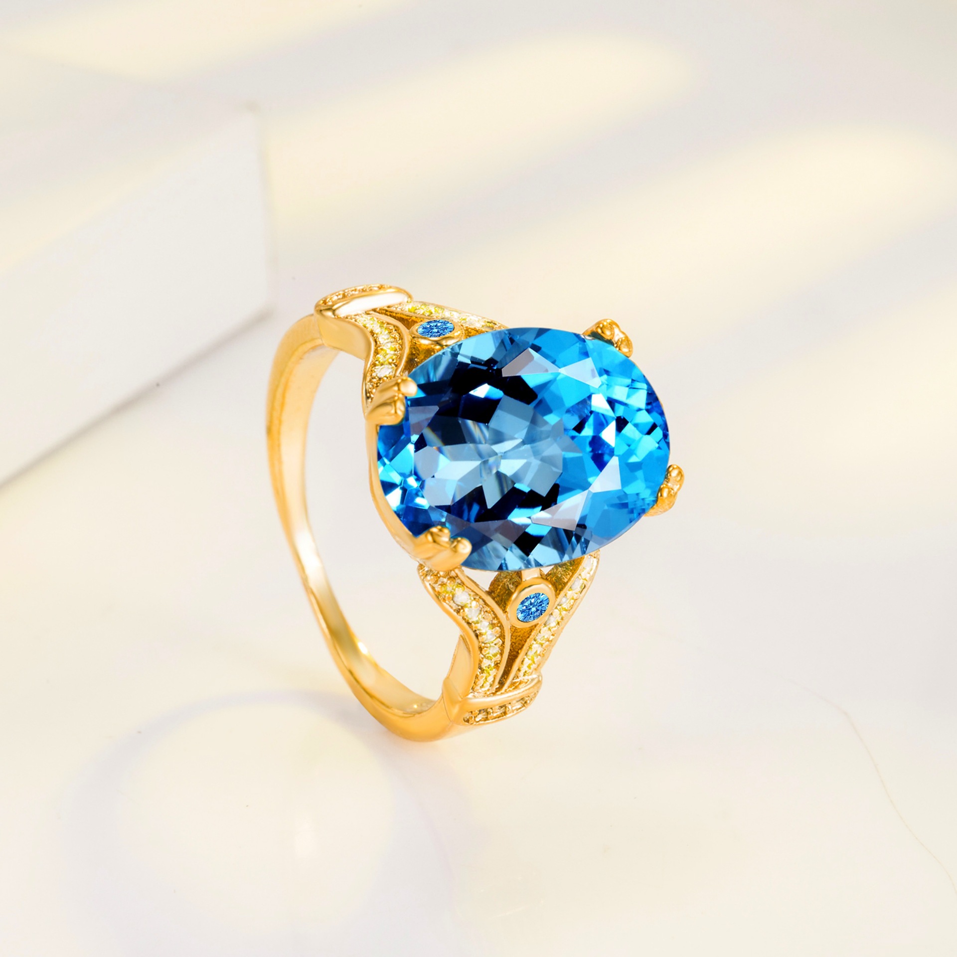 Goose Egg Diamond Creative Large Loose Stone 18k Gold-Plated Ring