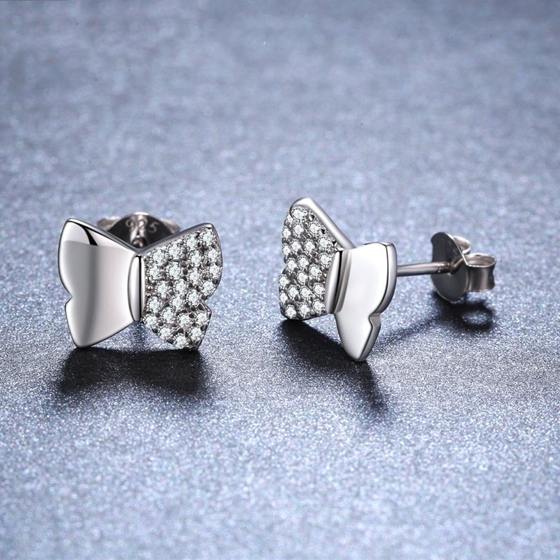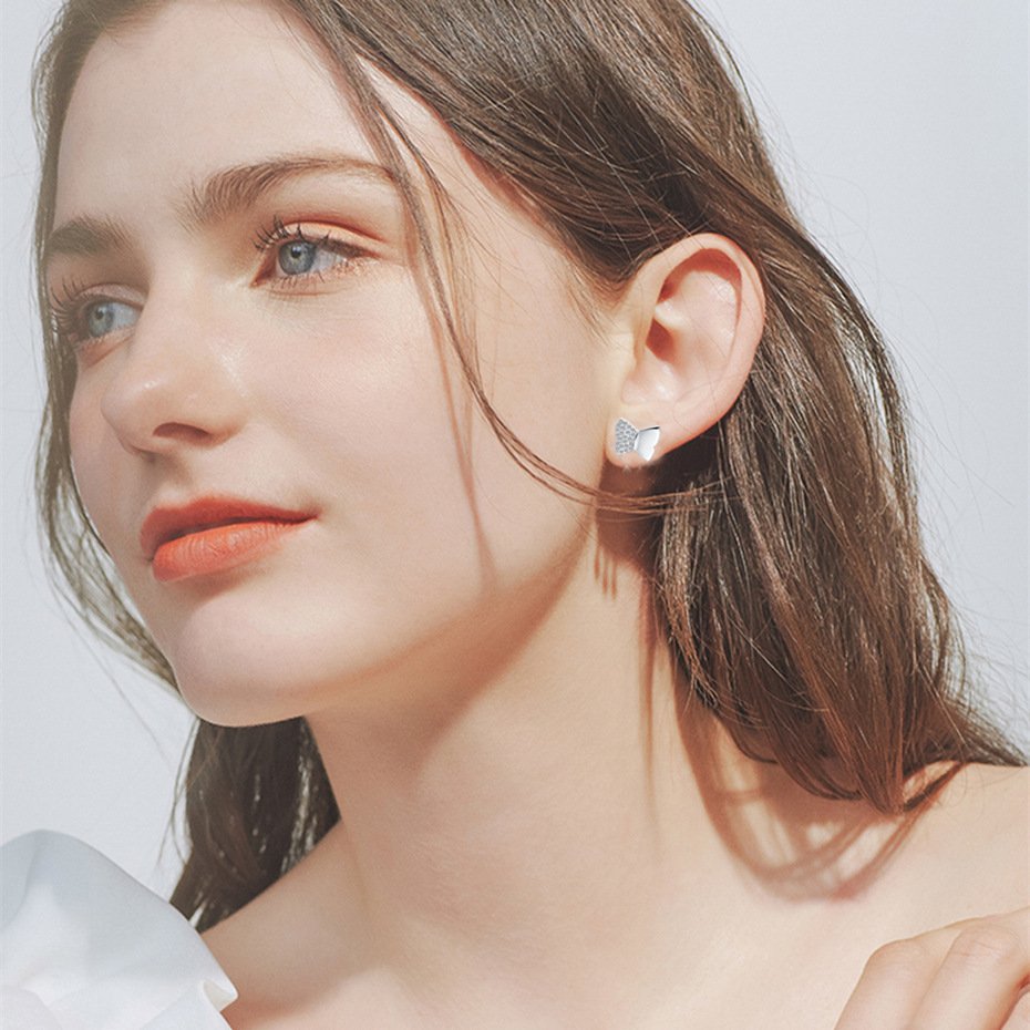 Korean Style Cute And Compact Butterfly Copper Plated Stud Earrings
