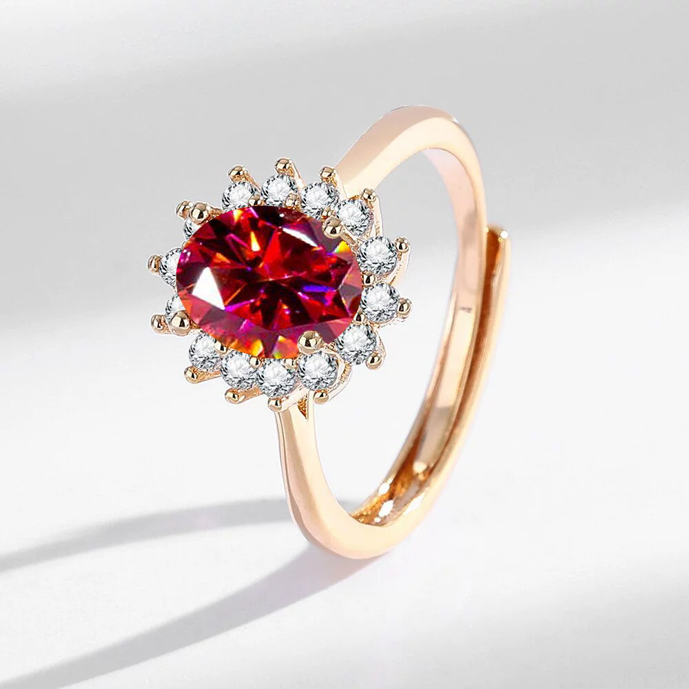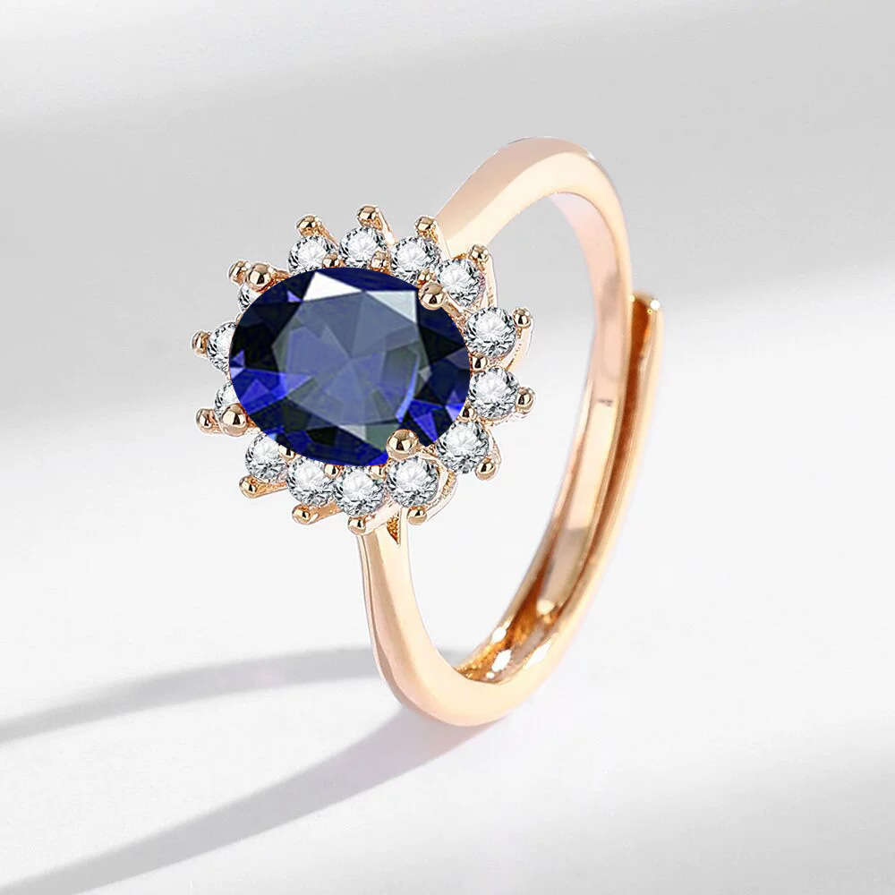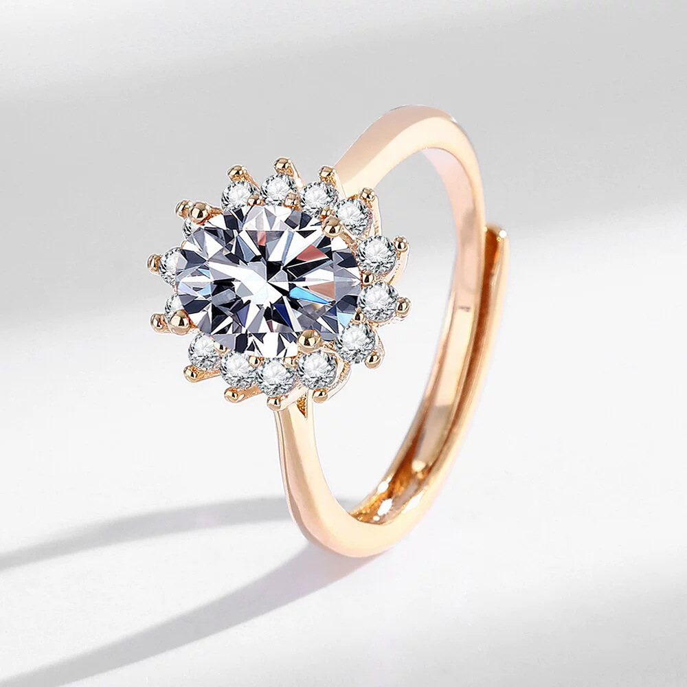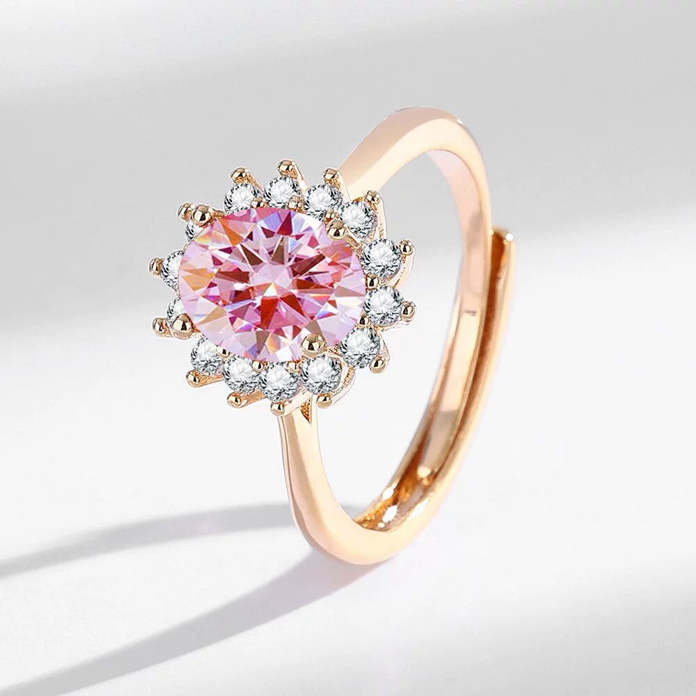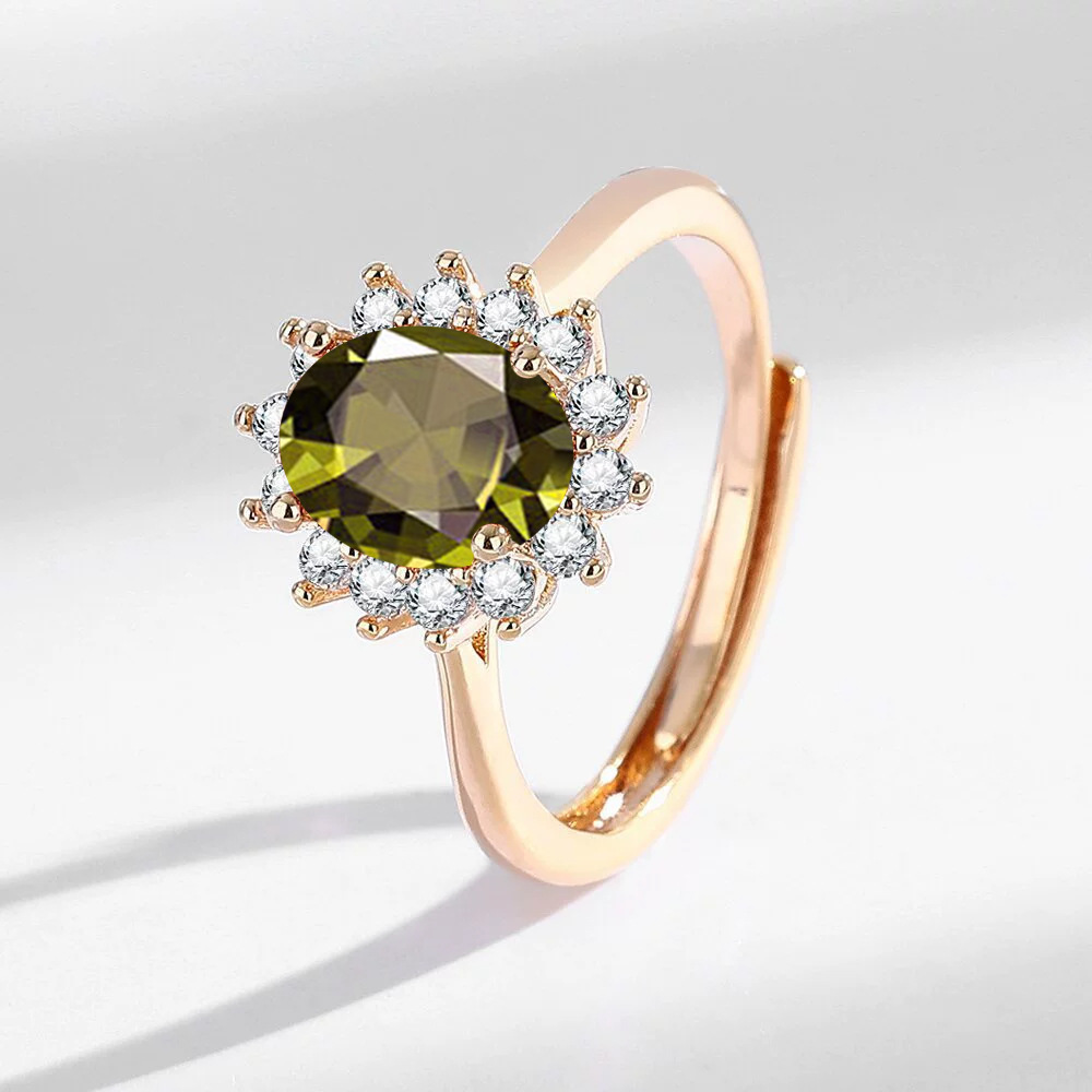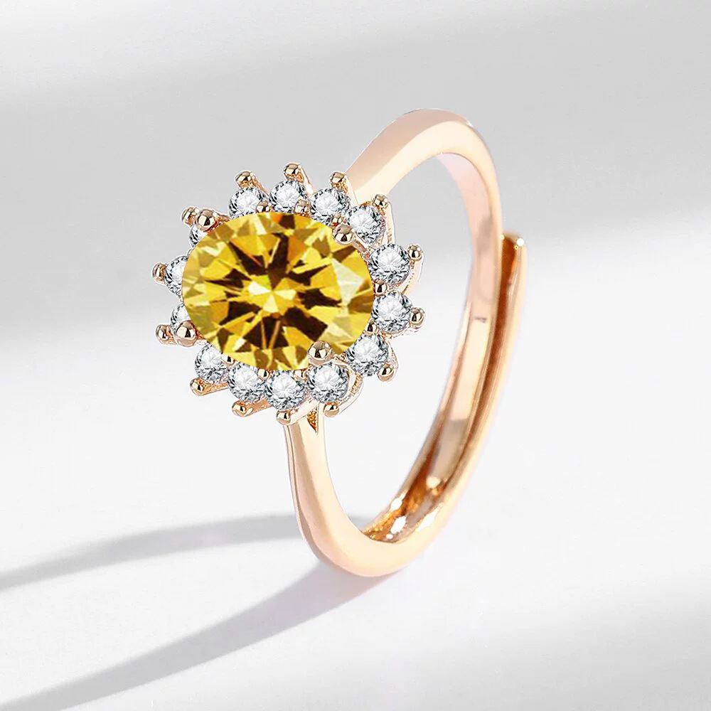 Light Luxury Sunflower Ring Champagne Gold With Colorful Gemstones High-Quality Hand Jewelry