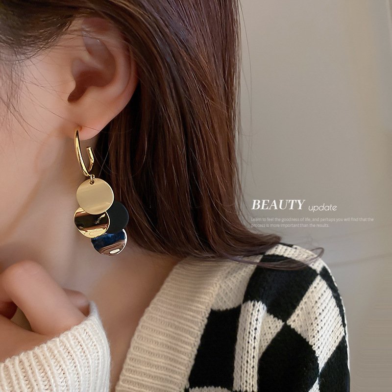 Silver Needle Metallic Sequin Circle Earrings Frosty